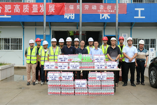 8月21日上午,廬陽產發(fā)公司總經理助理吳鋒一行來到合肥金融廣場項目工地,開展“戰(zhàn)高溫、送清涼”慰問活動。向項目工地施工人員傳達廬陽產發(fā)公司關心關愛,并送上礦泉水、藿香正氣液等防暑降溫物品。